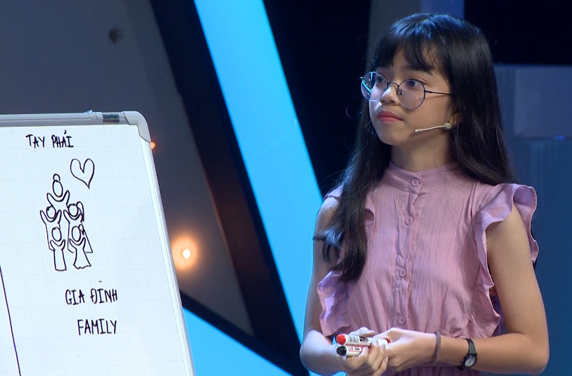 In addition to her ambidextrous drawing and writing skills, Yến Trang also amazed everyone with her lightning-fast mental math ability, leaving the judges both surprised and delighted.